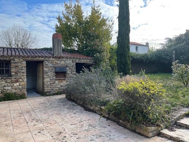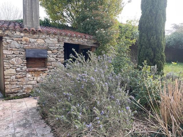 Sur terrain clos sans vis à vis de 511 m², maison en pierre de 114 m² habitables, offrant un beau cachet avec poutres et murs en pierre.