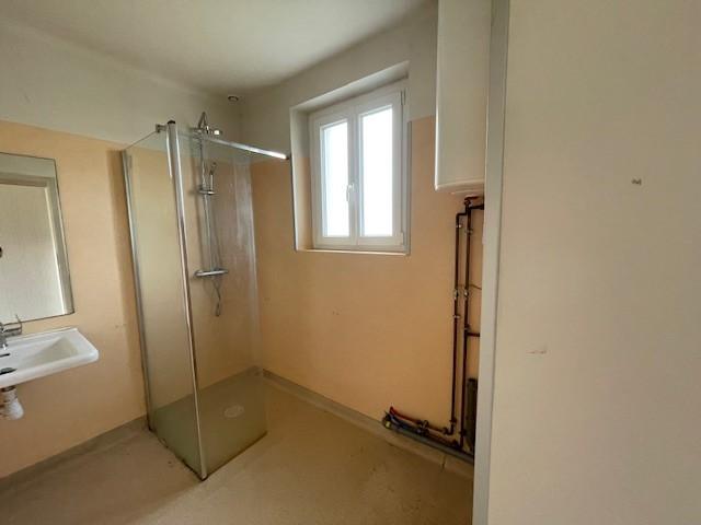Bourg, proximité écoles et commodités sur 588m² de terrain clos avec dépendances, maison de plain-pied composée comme suit : Entrée, deux chambres dont un avec meuble dressing, salle d'eau WC, séjour-salon avec poêle à bois récent, cuisine US